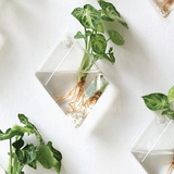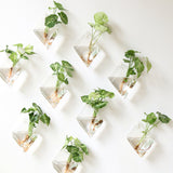 Hydrophonic geometric glass wall planters. These allow you to grow soil-free houseplants on your walls.