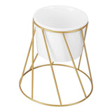 This beautiful planter features the incredibly detailed twist stand and also comes with the round ceramic white planter. The white vessel is completely removable.