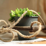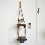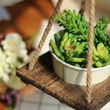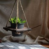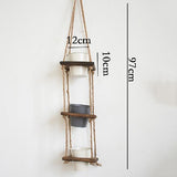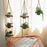 The Plant Stack is a quaint home accessory for petite plants and flowers. Features dark wooden shelving to be suspended from the ceiling.